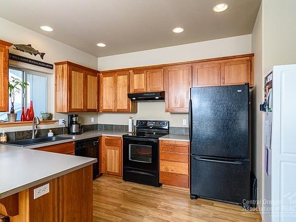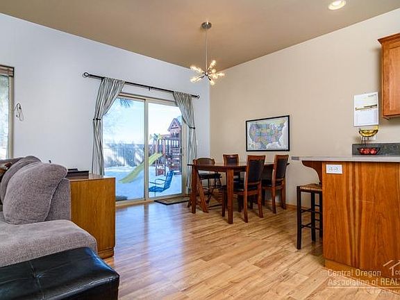 Adorable home in Redmond! 1236 sq ft home with 3 bed/2.5 bath with mountain views. Open floor plan! Kitchen features deep granite composite sink with disposal, breakfast bar and lots of cabinet space. Kitchen overlooks living area with gas fireplace with custom mantle. Updated lower level bathroom with new luxury vinyl floors, sink, vanity and mirror. Light and bright house features lots of storage space. Backyard has large concrete patio, fenced back yard and additional side of house parking for boat or small RV. Short drive from Bend and everything Redmond has to offer.