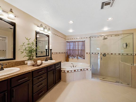 Perfect family lakefront retreat with 5 bedrooms 3 full baths in coveted Wellington community just minutes from the show grounds and zoned for A-rated schools and NO HOA. Open floor plan with clean tile throughout, stainless-steel appliances, and updated high-ticket items like the AC, pool pump, water heater, and Ecobee climate control. Stunning circular drive leads you to impressive wood double doors that take you inside a warm and inviting home. Three-way split plan places the master bedroom with an overlook of your private pool and tranquil lake. A family home that is perfect for your family.