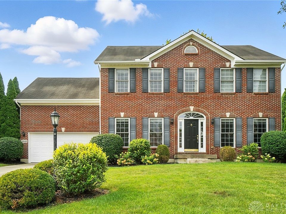 Traditional style 2-story with 4 bedrooms, 2 full & 2 half baths is located in Hunter's Ridge. This home is exceptionally well maintained, & is located on a .30 acre lot with lots of room in the fenced yard for your children or furry babies. You will appreciate the beautiful hardwood floors throughout the foyer, formal dining room, & study with Amish built-ins & desk that will convey. New carpet & new interior paint just completed in August 2025. The kitchen boasts of cherry cabinets, granite counters with beautiful tile backsplash, that is accented by black appliances. The breakfast area is open to the family room with a large FP & access to the large deck & patio. Upstairs the primary suite has a wonderful over-sized walk-in closet & large bathroom. Three other spacious bedrooms & 2nd full bath complete this level. The finished basement offers a large rec room with theatre seating, an extra room with attached half bath & a 3rd room that is unfinished & just great for storage. Step out onto the deck outside & enjoy the oversized fenced yard. Close to WPAFB, WSU, shopping & schools.