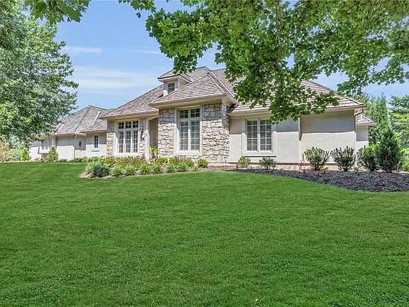 Amazing opportunity in Leawood's prestigious Hallbrook neighborhood. This 2018-renovated home boasts top-tier design, millwork, and appliances, offering a luxurious living experience. Situated on a cul-de-sac opposite a park, this home exudes villa-like living. The primary suite is located on the main floor and combines two former bedrooms. It features a spacious closet, full laundry, and a stunning bath with separate tub and shower. Additionally, there is one additional bedroom on the main floor plus an office. The third bedrooom is upstairs with its own bath and the fourth is in the lower level with full bath. The kitchen features granite countertops, stainless steel appliances, and an inviting eating island, complemented by a large pantry. The basement impresses with high ceilings, a gym, kitchen, and a spacious family room with a game area. Outside, the new, expansive patio boasts an outdoor fireplace and lush landscaping, providing a private retreat. There is attic room to expand. Hurry to take advantage of this opportunity!