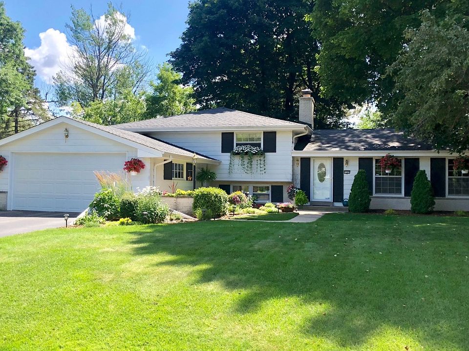 Beautiful home in Rivers Edge subdivision has been meticulously maintained for 35 years. Seller has wasted no expense on the Chef's kitchen with cathedral ceilings, abundant cabinets, granite counters, HWF, tile back splash, breakfast bar, newer appliances, wine & soda refrigerator, & planning desk. Kitchen opens to LR & DR w/sliding glass doors to the deck & private perennial landscaped backyard. Upper level features master suite & 3 additional BRs, all w/HWF. You won't be disappointed relaxing in your ''spa like'' bathroom with deep Jacuzzi. LL features entertainment size FR w/stone natural fireplace & bar, plus office, half bath & laundry room. Plenty of storage in the basement level which includes a large wine cellar. Att. 2.5 car garage w/side door to front entrance. A beautiful home!