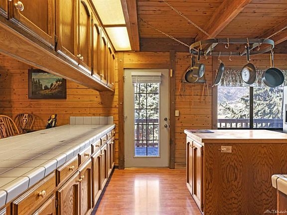 Custom Country Cabin! Approx 3270sf 4B/2.5B Log Home on approx. 5.23 rolling to level oak tree dotted acres.Large Kitchen with ample storage, center island, incredible views from kitchen window, deck access. Formal Dining within reach with built in hutch. Comfortable living room w/Corner Rock Hearth. Generous sized rooms. Wood framed windows. Extra large bedroom upstairs could double as a game room, office, etc. Stunning wood beams throughout. Wrap around deck. Perfectly situated at the base of the mountain to take in those Gorgeous Valley Views! Room for Horses, Barn, Workshop. Excellent location on the valley floor, cul-de-sac, close to the gate. Much potential!