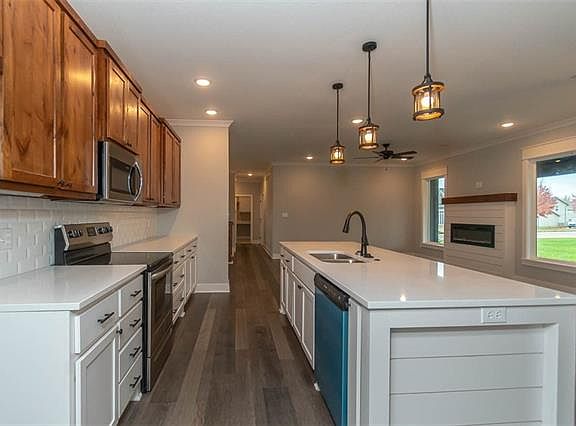 Do not miss this opportunity to own a one level living 3 bed/2bath home in Spring Hill. This home is located near shopping, restaurants and easy access to Kansas City. This open concept slab has many features including a covered patio, safe room, granite countertops, electric fireplace and much more. Do not miss viewing this one!