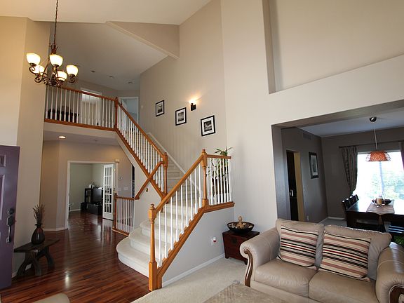 Do not miss this clean and well-kept home with tremendous curb appeal in Saddle Rock Ridge!! You will fall in love with the front-to-back landscaping the moment you arrive. Gleaming wood floors and beautiful paint colors greet you upon entry. Vaulted ceilings and an open floor plan allows natural light to pour in and fill the space. Gorgeous kitchen with matching stainless-steel appliances, an island, granite counters, plenty of cabinets for storage, a gooseneck faucet and an eat-in area. Separate dining room for entertaining. The kitchen opens into the living room which has been finished with a fireplace and built-in shelving. King-sized master bedroom with a 5-piece bathroom and walk-in closet upstairs. 3 more bedrooms and a full bathroom with granite counters completes the upper level. Spacious basement with a non-conforming bedroom, a 3/4 bathroom and a wet-bar! Truly amazing backyard with mature landscaping and stunning views. Book your showing quickly!!!