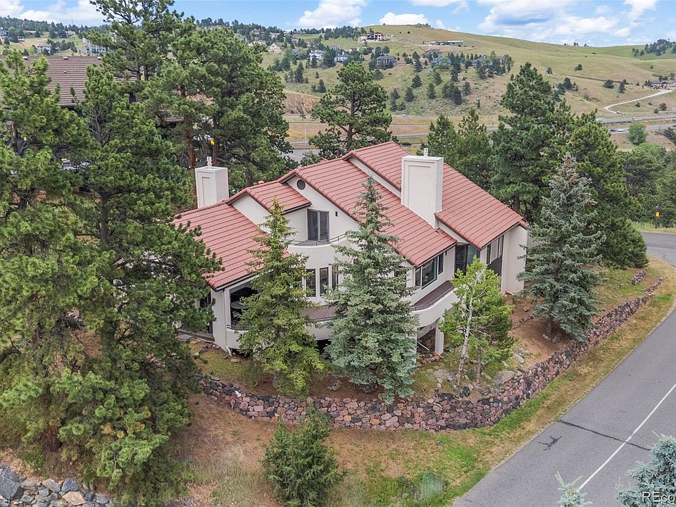 Nestled in the foothills of Golden Colorado, this Sears Barrett designed home is located in the gated community of Riva Chase. Ideally situated just 20-minutes from downtown Denver, 30 minutes to Boulder, and only 5 minutes from the iconic Red Rocks Amphitheater. Exceptional access to both urban amenities and outdoor mountain adventures. Surrounded by scenic hiking trails and just an hour from world-class ski resorts, it’s a dream come true in the perfect neighborhood. Luxury features abound in this ‘fully renovated’ 4-bedroom home where thoughtful design meets high-end finishes. At the heart of this home find a stunning gourmet chef’s kitchen, open to the family room with breathtaking southern views. Features include custom maple cabinetry, premium appliances including a Gaggenau induction cooktop, Viking wine refrigerator and a built-in icemaker. Stunning natural Christallo quartzite countertops, vaulted ceilings and an abundance of natural light. The main-floor primary suite is a true sanctuary featuring a dual-sided fireplace, spa like bathroom with soaking tub, expansive countertops with double sinks, and dual closets with custom built-ins. Enjoy heated floors in the primary bath, as well as the two additional full bathrooms. A half bathroom is conveniently located on the main floor. The upper level provides two spacious bedrooms, with ample closet space in each room, along with a full bathroom including a shower/tub. Relax on the upstairs private balcony, a picturesque extension of one of the bedrooms. Descend to the walkout basement to find an additional living area with a fantastic recreation space, and a private suite which has privacy for extended guests, or a teenager's retreat, including a full bathroom. Embrace the serene mountain lifestyle and views on the expansive wrap-around Trex deck that features ample covered and uncovered space. This home is being sold furnished and turnkey. Every detail has been thoughtfully curated for style and comfort.