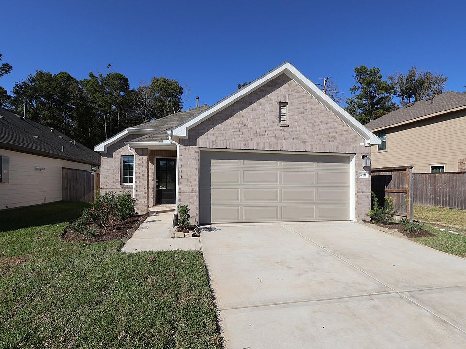 New home in New Caney in the Pinewood Grand at Grand Texas. Meet the Boxwood! This beautiful home comes with 3 bedrooms, 2.5 baths, and a 2-car garage, at 1668 sq ft. The open-concept living space includes the family room, dining area, and kitchen. Entering from the home's lovely front porch, you'll find yourself in a long foyer with sightlines extending to the back of the home. You will find a convenient pocket office as you walk. Enjoy an impressive kitchen finished with granite and spacious cabinets for storage. Boasting a well-lit bedroom, a walk-in closet, and an en-suite bath, you'll love all the accommodations in this luxurious owner's suite. Your owner's bath retreat awaits you through double doors with a walk-in shower and a large walk-in closet. Looking for more space? Check out the covered patio—it's perfect for entertaining! Contact us to learn more.