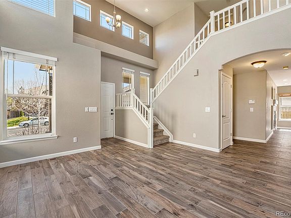 **GOING LIVE Thursday 5/11** MOVE IN READY. This charming two-story home is located on a quiet cul-de-sac in the highly desirable Saddle Rock Ridge neighborhood. With three bedrooms and two and a half baths, this home has been fully updated with modern amenities and stylish finishes. The wood-like tile flooring adds a touch of elegance to the entire main level, which features a remodeled kitchen with sleek silestone counters, a spacious breakfast island, updated cabinets, and stainless steel appliances. A formal living and dining area, as well as a cozy family room complete with a gas fireplace, make this home perfect for entertaining. Upstairs, the luxurious primary bedroom boasts an updated five-piece bathroom, while the guest bathroom has also been tastefully updated. Step outside to the backyard and discover an oversized deck surrounded by mature landscaping, along with a private sundeck for your furry friend. The large unfinished basement offers plenty of space for storage, a home gym, or the opportunity to expand. This home is located only minutes away from E-470, Southlands Mall, Buckley AFB, and within the highly sought-after Cherry Creek School District. Don't miss the opportunity to make this stunning home yours!