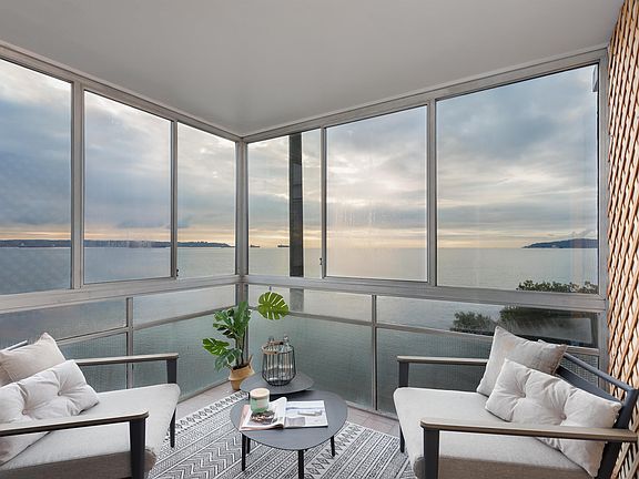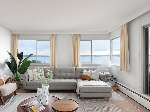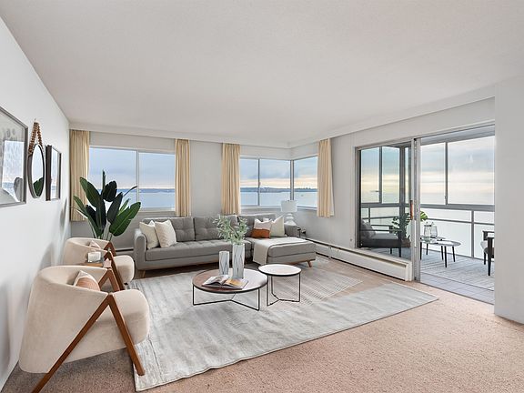 DIRECT PANORAMIC WATERFRONT VIEWS! This rare & exclusive 1142 sqft, 1st floor, 2 bed/2 bath corner unit defines the ultimate in waterfront living. Ideally situated just steps from the seawall & everything Dundarave has to offer, this home boasts breathtaking unobstructed 180 degree oceanfront views from all principal rooms. Spend evenings relaxing and taking in the magnificent sunsets from the open design living, dining & solarium. This home is a blank canvas for a modern renovation & to add your own personal style. The unit offers 2 parking spaces, 1 storage & approval for in-suite laundry. Enjoy private entrance to the seawall from the building, common area, gardens & being minutes from Dundarave's finest amenities: WV Rec & Senior Centre, Library, transit & shopping.