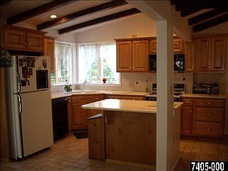 Custom rancher with some surprises~Vaulted, beamed ceilings in LR & kitchen ~ Expanded kitchen with oak cabinets, ceramic tile floor, Corian countertops & pantry cabinet ~ Dining area plus center island with breakfast bar ~ Newer carpet and paint through-out ~ Heated one car garage ~ Sunroom with ceramic tile floor ~ 2 large rooms in basement (finished, but needs flooring )~ Radon system & water softener included.