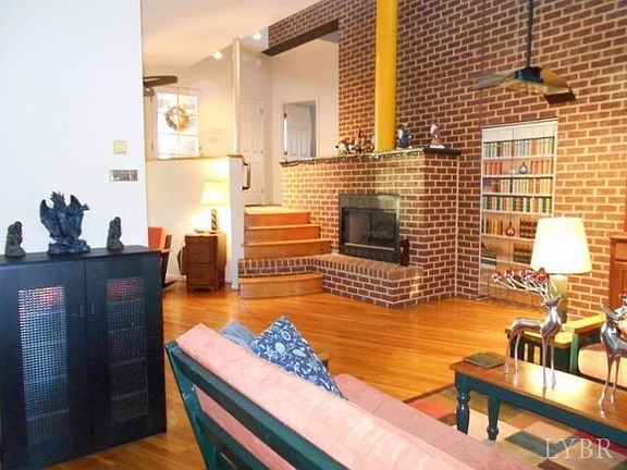 Contemporary design with main level master, two upstairs bedrooms, and a large open great room with adjoining kitchen. Unfinished basement, so all the square footage is above grade. One acre wooded lot backs to the Falling River Country Club. Great location: 10 minutes from the Walmart in Appomattox, and 23 minutes from the River Ridge mall in Lynchburg. Efficient and inexpensive to maintain. Passive solar sunroom, gas appliances, low Appomattox county taxes, and reasonable Dominion power electricity. Also has Shentel cable and internet service, plus Verizon phone service. Come see this unique and beautiful home.