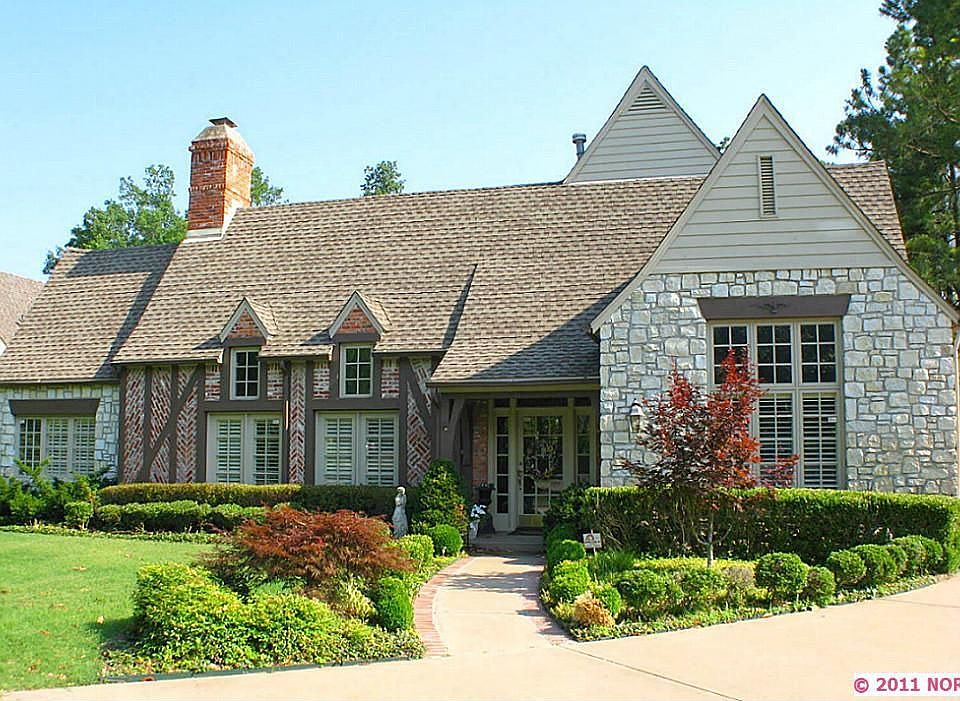 Well maintained Brumble built English Tudor located in one of Tulsa's desirable neighborhoods Vaulted liv w/ stone arched accents Study w/ custom bookshelving Vaulted formal dining Delightful open kit w/ granite center island, dbl ovens, custom cabinetry Spacious mstr suite on first level Mstr bath w dbl vanities