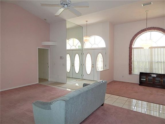 This pool home in the community of Deep Creek has plenty of room for family and friends with almost 2000 square feet of living space. Features include storm shutters, public water and sewer, oversized garage, new hot water heater, dedicated laundry room with pantry and utility tub, well for irrigation system, security system, surround sound, soaring vaulted ceilings, plant shelves, blinds and pocket doors throughout, and central vacuum system. Living and dining areas have mirrored accent walls, and living room has pocket sliders for unobstructed view of pool and greenbelt. Eat in kitchen boasts granite counters with drop in double sink with decorator faucet, built in desk, long snack bar, pantry, and spacious breakfast nook with expansive view of pool and greenbelt. All bedrooms have bump out walls for extra living space and walk in closets. Master suite has cozy sitting area overlooking pool and greenbelt, huge walk in closet, and master bath with jetted tub and separate shower stall, 2 vanities, make up vanity, and lots of cabinets and storage. Extended lanai has outside shower and storage closet. Solar heated pool overlooks the greenbelt. Nice curb appeal with tiled front entry and etched glass double doors, concrete curbing, decorative rock, accent lights, mature palms, and lush tropical landscaping. Proximity to waterways, local beaches, dining, shopping, public parks with bike and walking trails, and golf courses make this property ideal for the Florida lifestyle. Great home in a great neighborhood.