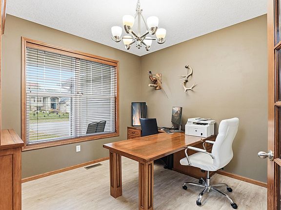 Step into this inviting 5-bedroom, 2-story home in a quiet Buffalo neighborhood, where classic charm meets everyday comfort. From the covered front porch to the two-story foyer, the home greets you with warmth and beautiful woodwork throughout. The main level is designed for both gathering and functionality, featuring an open layout that connects the living room, dining area, and kitchen. Large windows fill the space with natural light, and the fireplace adds a cozy touch for cooler evenings. The kitchen offers plenty of space to cook and entertain with a center island, breakfast bar, and walk-in pantry. French doors open to a main-level office—perfect for working from home—and the main floor laundry adds convenience. Upstairs, four bedrooms include a spacious primary suite with a walk-in closet and private bath complete with double sinks, soaking tub, and separate shower. The partially finished walk-out lower level offers a fifth bedroom and bath, ideal for guests or teens. Step outside to a large deck overlooking the fenced backyard and a charming playhouse that adds character and possibilities. With recent updates including new carpet throughout, a new roof (2022), and new furnace, A/C, and water heater (2023), this home blends space, style, and peace of mind.