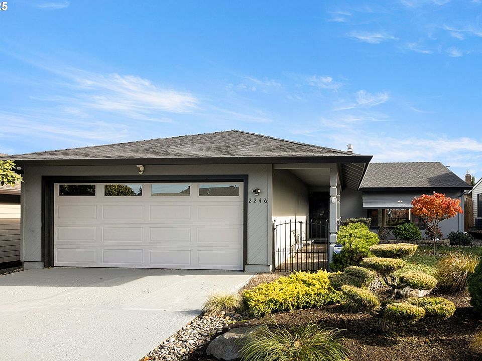 Welcome to your move-in ready home in Summerplace, a vibrant 55+ community! This beautifully maintained residence features 2 bedrooms plus a den! It would be hard to find a home that has been better maintained. Updates include New Roof in 2024. The AC, Furnace and Water Heater were replaced in 2022. New Gas Fireplace insert in 2021. Additional updates include carpet, flooring, some windows and the slider in the den. Gorgeous front yard landscaping. Low maintenance and functional backyard with a shed. Front security fencing and security screen door. Fully fenced with side gates. The inviting floor plan features a warm gas fireplace, stainless steel appliances, and the versatile den with a patio slider that opens to the backyard. The dining room’s charming bay windows fill the space with natural light, while the primary suite includes ample closet space and a bath with a walk-in shower. Enjoy the convenience of an indoor laundry room and a 2-car garage with a new insulated garage door. Experience the best of low-maintenance living in one of Portland’s premier 55+ communities for an exceptional value. Shown by appointment. Call today! [Home Energy Score = 5. HES Report at https://rpt.greenbuildingregistry.com/hes/OR10242707]