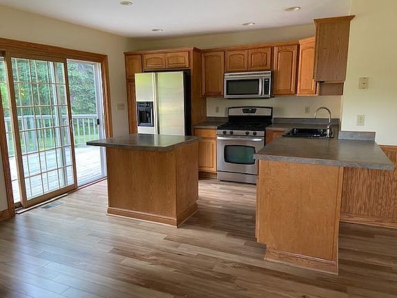 The house sits across street of a public school, with access to walking trail, play ground area, softball and soccer fields. House has a total of six rooms. The dimensions are; living (20ftX20ft), dining & kitchen (20ftX20ft), master bedroom (15ftX15ft) with clothes closet (10ftX3ftX12ft), second bedroom (8ftX10ft). The finished basement is accessed by a staircase off the kitchen. The first room entered is (18ftX15ft), then a second room (13ftX22ft) with closet. The laundry room is accessed from the second room in the basement. The (24ftX30ft) wood deck is accessible from the kitchen and first floor bedroom. The house boast a large deck with view of a large backyard and wooded area and also is near a community vegetable garden, public school, community walking trail, including youth football, baseball, and soccer fields. Tenant responsible for gas & electric, snow removal & ice control. Rent includes $95 stipend per month for municipal water, sewer service, trash collection. Charges in excess will be billed back to tenant quarterly. Clothes washer and electric dryer included. Detached two car garage available. Non-smokers preferred. No pets permitted. No exterior storage of inoperable vehicles, ATV, furniture, tools, containers, construction materials, trash.