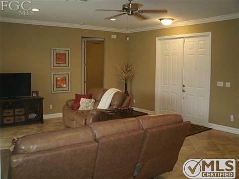 Barely lived-in newer pool home in model condition! This spacious 3bd/2bth/Den offers nearly 2000 sq ft of upgrades in every corner, from crown moldings throughout, stunning granite countertops, stainless steel Frigidaire appliances, upgraded 20 inch tile throughout, and so much more. Outside, you'll find great curb appeal with Paver driveway and walkway, under truss lanai, pool surrounded by upgraded hurricane proof pool cage, and floortam sod lawn with sprinkler system. Did I also mention the location gives access to one of the best school system in Cape Coral!! Photos don't do this house justice, schedule your appointment to see for yourself today. Brokered And Advertised By: American Brokers Realty Group Inc Listing Agent: Fred Georges