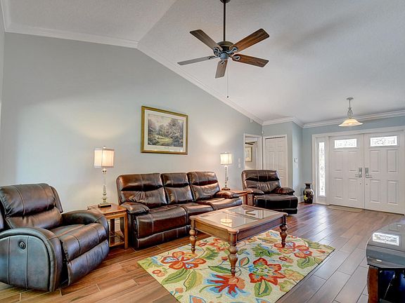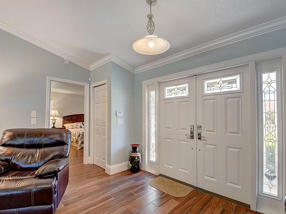 Remodeled in 2017/2018, this beautiful 3 bedroom, 2 bath home with solar heated salt water pool on large corner lot brings all the comforts and expectations of 'home'. Stunning wood look porcelain tile throughout the entire home. Cherry kitchen cabinets with gorgeous light granite countertops and all new appliances. Light and bright, open concept plan with vaulted ceilings and real fireplace makes this home warm and inviting. Plantation shutters, crown molding and 7 1/2 baseboards show the quality of the remodel. Two sets of sliders going out to the pool/patio area which is encompassed by fence and high hedges for privacy...plenty of room for the kids/dogs to play. New accordion shutters, a/c in 2020, hot water heater 2017, roof 2016 and the list goes on.