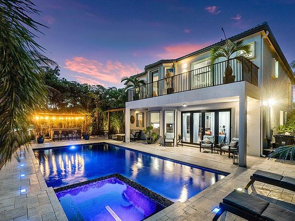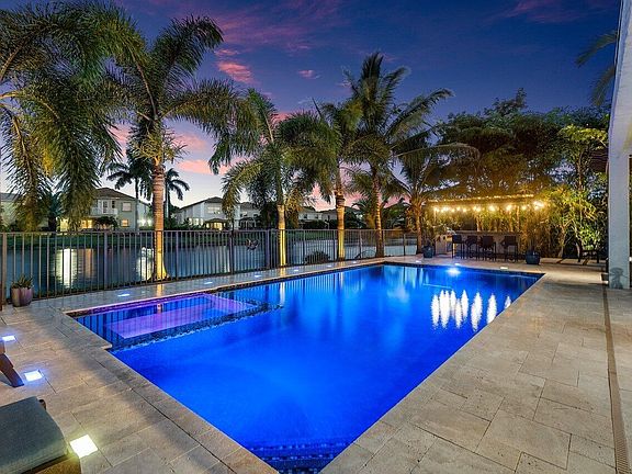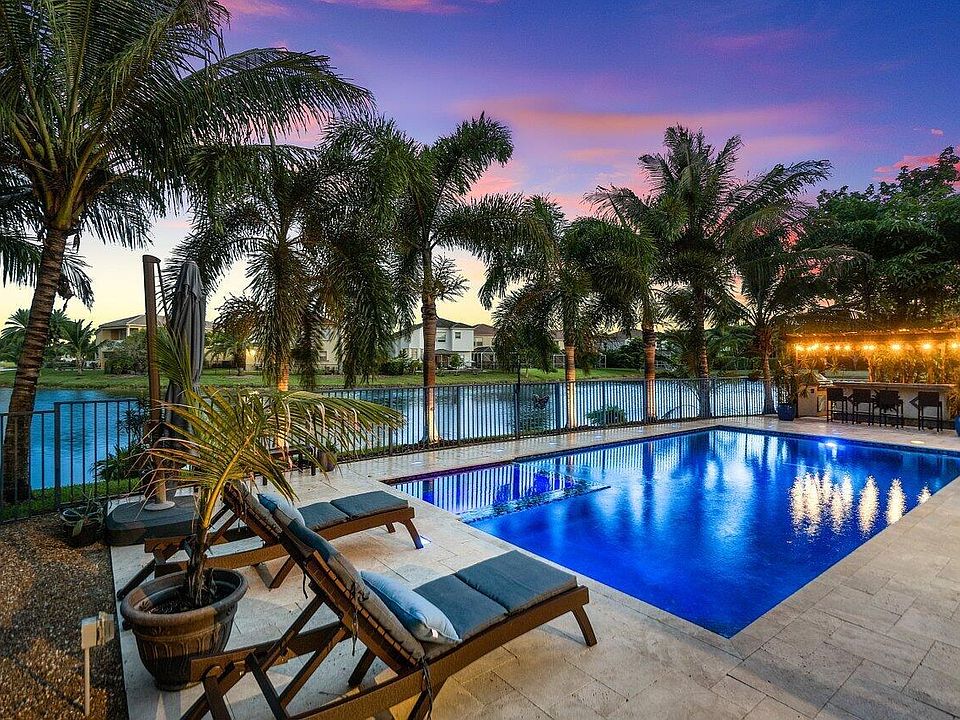 Looking for Peace of Mind & Your Own slice of Paradise! Beautiful lakefront oasis equipped with a fairly new (2016) lagoon style saltwater pool with an invisible 6 person jacuzzi, outdoor kitchen, 2 covered pergolas, and a large variety of fruit trees (Mango, Banana, Avocado, and more). Some of the many upgrades include: NEW ROOF & gutters, Hi Impact Windows & Door and accordion hurricane shutters for an extra layer of protection. Huge Master BR with a completely renovated bathroom(2024), New California walk-in closet, 2 Trane AC units 11/17, Whirlpool Stove(2023), & Freshly Painted Exterior. This Stunning home has an en suite BR on the 1st floor, with the Master and 2 more Bedrooms, laundry room, and extra living room on 2nd floor. Seller will give Buyer a 10k credit for closing costs.