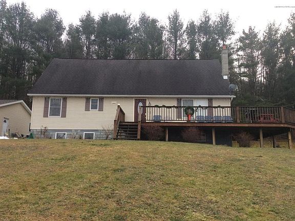 Surrounded by nature this 3 bed 1.5 bath home sits on 5.06 acres, has a 2 car detached garage. A walk out basement for easy access. Also has a front deck where you can sit and gaze at the sunset views over Jenningsville pond.