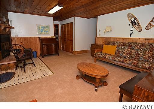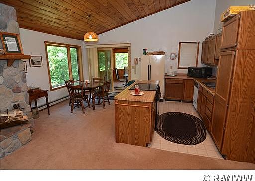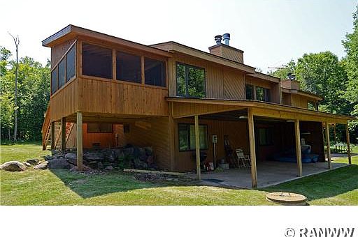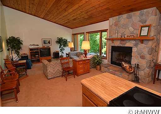 Spacious 3 bedroom, 2 bath twinhome features open living room, dining room, and kitchen area with vaulted ceiling. A multi-level with cedar interior, 2 woodburning fireplaces, patio, screened in deck, and on car attached garage. The lot contains 100' of sand frontage, northern exposure, and 1.01 acres.
