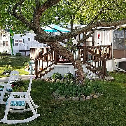 NOTE: Seasonal homes may be purchased by persons under age 55 who are approved for residency by Klines Resort. Seasonal homes are occupied May 1 through October 31. Shown by appointment only. Please do not knock on door due to owner having a dog. Please contact Mary Bowersox at 269-423-2614 to see home. Are you ready to retreat to a Lakeside Haven? The July 2019 issue of Encore magazine features Klines Resort as just that! A truly one of a kind 55+ senior community boasting 160 acres on Portage Lake. The beautiful clubhouse features café and dining room, exercise and recreation room, and a stage for outdoor concerts. This pet friendly Resort features 150 manufactured homes sites and 85 RV sites for either seasonal or year-round living. This seasonal home is just steps away from Portage Lake and boasts views of the water from both decks. This 1987 Oakland Park home (12x32) features one bedroom and one full bath as well as an additional porch (10x24) for more living space. Updates include new carpeting throughout, new water heater, new stove, ceiling fans and light fixtures, top of the wall heating/cooling unit with remote control installed in 2020, lifetime guarantee metal roof installed in 2014, skirting replaced in 2017, and newer windows and siding. IMPORTANT: Please verify all information with current owners of these homes. Klines Resort is not responsible for these sales. All homes have been inspected by Resort management & may require improvements as a condition of sale. Contact resort office for a copy of inspection report listing any required improvements. Purchasers must apply & be approved by Resort management prior to finalizing purchase. Lot rent includes water sewer and trash.