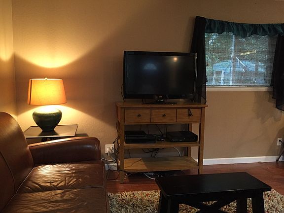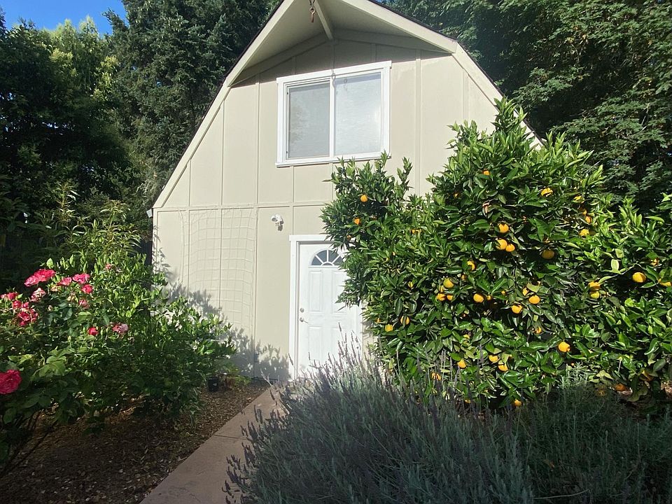 This is a comfortable guesthouse with loft located in prime location for Santa Cruz Mountains wine tasting and mountain biking. The guesthouse sits behind the main house on a quiet one-acre rural property. The house has a porch with outdoor seating. The property has large gardens and many fruit trees. Also, living on the property are a black Labrador Retriever, an American Water Spaniel, two orange tabby cats, 12 hens and a crowing rooster. There is a great local market 5 miles down the road and a pizza place nearby. Travel times to nearby cities are: 10 minutes to Los Gatos, 10 minutes to Scotts Valley and 20 minutes to Santa Cruz. Utilities included. Security deposit and first month's rent due at signing. No smoking.