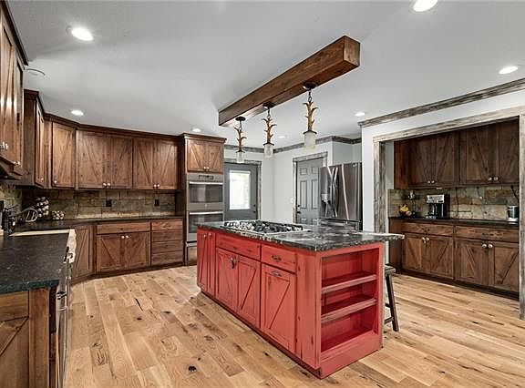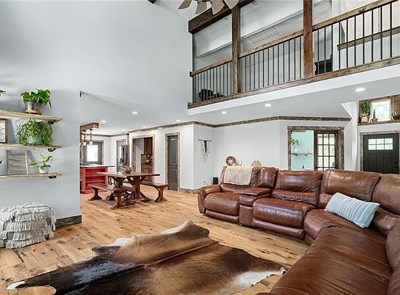 NO FAULT OF SELLERS - buyer's financing fell through! Completely updated 1.5 story home on 9+ acres on a quiet cul-de-sac road in Spring Hill! Open floor plan includes a great room with soaring ceilings fireplace, natural light, hardwood floors, main floor office, mud room and quality finishes throughout. Master suite on main floor has two walk-in closets, laundry hook-up, private deck and spa-like master bath. Well-designed kitchen features: custom cabinets, double oven, gas cooktop, beverage fridge, granite farmhouse sink and coffee bar. Upstairs offer three large bedrooms, two full updated baths, second laundry and a cozy loft overlooking great room. Oversized deck off kitchen and finished basement! Fresh paint inside and out, all new Marvin windows, new dog bath, new gutters, newer roof, epoxy floors in garage. Heated and cooled 24x30 metal building with concrete floor and 10 foot overhead door. New horse barn has 5 Priefert stalls with swing-out feeders, concrete alley, feed/tack room, plus 12 x 40 foot lean-to for extra storage. Fenced and crossed fenced for livestock with multiple sheds. Very private setting with lush landscaping, mature trees and trails! Located near Hillsdale lake. Gardner- Edgerton schools. This move-in ready property is truly one-of-a-kind! Seller is building and is flexible on closing buts needs a December 1st possession (potentially sooner.)