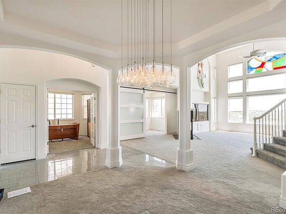 Mountain views, golf course serenity, beautiful sunsets & Cherry Creek School District! This is the home you have been looking for! Situated on the 4th hole of Saddle Rock Golf Course, this beautiful home has mature landscaping & upgrades throughout. With an impressive dual staircase, the soaring 2-story family room windows take in the beautiful Mountain Views. This executive home features an open floor plan; a spacious kitchen with abundant cabinets & granite counters; a back deck overlooking the 4th hole of Saddle Rock Golf Course; a huge master bedroom & bath with jetted tub & large walk-in closet with a private deck; a private study & million dollar views! The walk out basement is ready for entertaining. Complete with full wet bar and two-way mirror that is a functioning TV. This a great place for entertaining or enjoy the spacious media room for a family movie night. The basement also boasts an in-law suite with a sitting room and a private bath. The community is situated close to shopping & the Aurora Reservoir, with easy access to E470, DIA & DTC