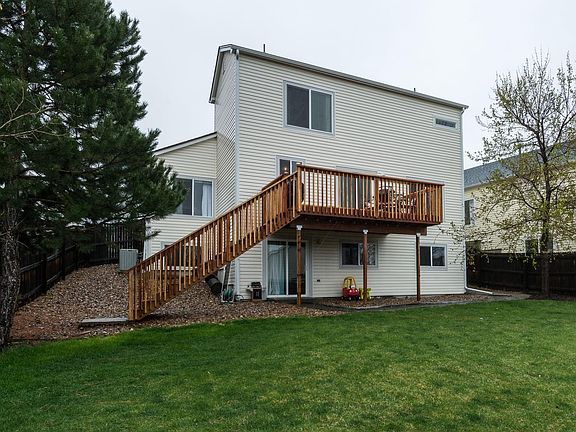 Incredible views of the front range! This exceptional Saddle Rock two story has it all! Open, light and bright describes this great floor plan including hardwood floors, cooks kitchen with granite, large pantry and stainless appliances. Details like tile, rock and custom paint add designer touches to the home. All four bedrooms are together including the master suite, master bath and large walk in closet. Use the bonus room in the basement for crafts, game room or secondary bedroom. Nice back yard with a new redwood deck completes this beautiful home. One of the finest in Saddle Rock!