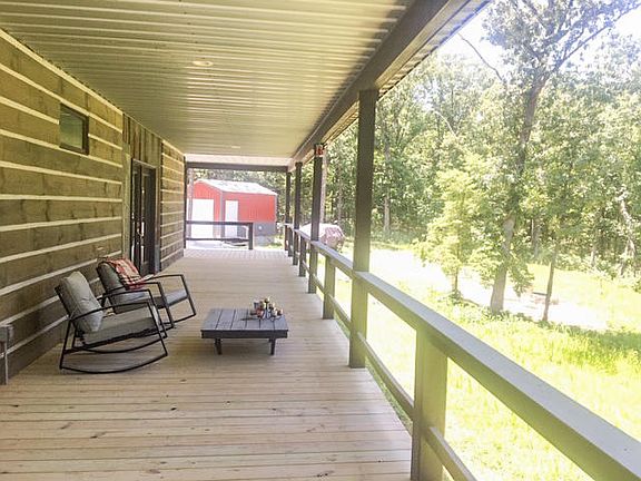 Beautiful, quality built home less than 1 year old that sits on 7 acres off Pomme de Terre Lake. Located 1 mile to lake access and near an 18 hole golf course, this home offers lush wooded scenery and privacy as it's surrounded by timber on 3 sides. 3 bedrooms, 2 baths, including large master with walk in shower and open concept floor plan for the living room, kitchen and dining room. Metal roof and pine siding accompany the large wrap around covered deck measuring 9x11, 10x58 and 10x36. Cental heat and air and an electric fireplace. Also included is a 12x16 insulated shed with full electric and full RV hook ups.