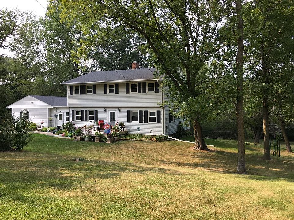 Enjoy Nature On 1.8 Acres with Creek Close To Town On Hard Surface! 5 BR, 2.5 bath, 2 story w/ 2,628 SF, brick gas fireplace 2014 in large living room, formal dining, oak kitchen w/ breakfast bar & pantry closet, main floor family room, 12x16-4 season room 2007, walk-in shower & large linen in master bath, high rise toilets, laundry sink in walk-out basement, softener, CA, replacement windows, vinyl siding, beautiful landscaping, fenced garden, patio, 2 decks, shed & 22x22 attached garage. Water heater 11/2020, stove & dishwasher 2019, furnace 2016, carpet 2014. $50.00/month for water & road maintenance. Call Jane Berg w/ Egemo Realty at 515-955-7443 or email Jane@JaneBerg.com for a private showing.