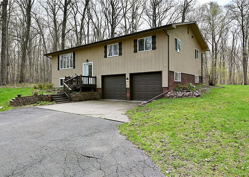 Located minutes from Rice Lake and Cameron is this tastefully updated split-level home. The upper level has 3 bedrooms and 2 bathrooms. One bathroom is located in the master bedroom and the other bathroom has the laundry units. Completely new and reconfigured kitchen, bathrooms, and hardwood floors on the upper level. The lower level has a cozy family room with gas fireplace, utility/storage area, and access to the garage. Oversized 3 season porch to enjoy your morning coffee and the nature that abounds you. Two car tuck under garage and a 3 car detached garage for all of your storage needs. 3.7 acres abundant with wildlife. New septic in 2021 for your peace of mind.