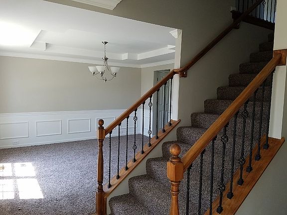 Spacious two-story home now available in Windsor Estates. Home has 4-bedrooms, 4-bathrooms, 2-car over-sized garage with a finished basement that includes an extra sleeping area. As you enter the home, the dining room is to the left and has a gorgeous wainscoting & tray ceiling. The sitting room to the right has double glass doors & the great room has lots of natural light from the large bay window! The living room has a brick wood burning fireplace. Kitchen has 42 maple cabinets, beige solid surface counter tops, modern tile back splash, new GE stainless steel appliances, island, desk planning area, & pantry. The main level has laundry room & half bath. Upper level has a HUGE master bedroom with coffered ceiling & 2 walk-in closets! The updated master bathroom has a glass shower door, separate dual vanities, & tub. There are 3 additional bedrooms & a full bath. The basement includes a family room, sleeping area, bathroom, & 2 storage rooms. Home has passed city occupancy.