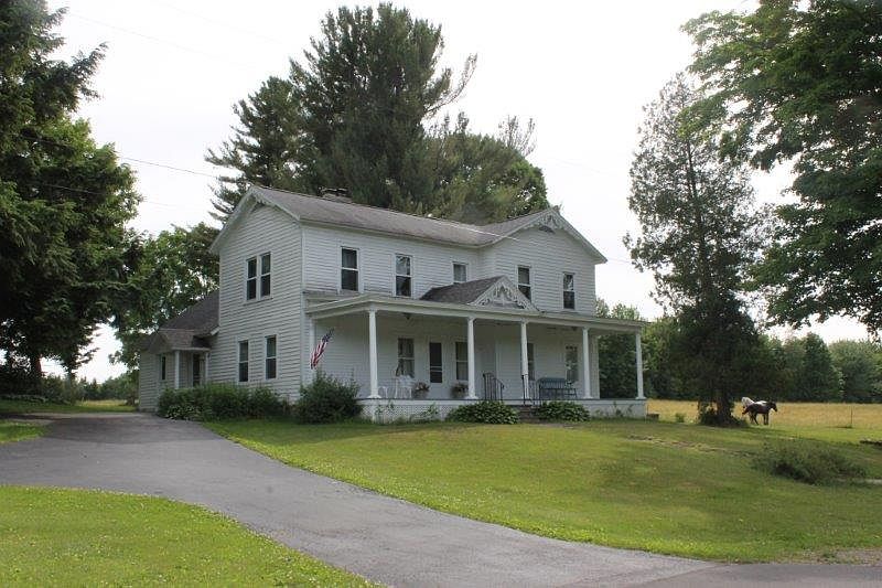 70 acres Hunting and Farm land for sale with Farmhouse, Carriage, and Barn in Parish, NY! Charming farmhouse with acreage right down the road from Happy Valley Wildlife Management Area. Perfect property for outdoor enthusiasts or nature lovers. This property boasts the perfect mixture of agriculture land (approx. 11 acres of hay meadow and pasture) hard and softwoods, sugar bush (approx. 5 acres) and some wetlands along a creek loaded with ducks, geese and herons. You can have it all! This is an ideal home for horses as the pasture area is fenced with 3 lines and are miles of trails right down the road. Raise beef cows, bees, goats or sheep. Live off the land! This property has the perfect blend of land features! Home features: 2,340 square feet. First floor has country kitchen and dining area right next to a wood fireplace, large living room with front door entry (lovely custom 1800's front door with frosted window and built in twist door bell) leading to large study and also to downstairs master bedroom, large closet space with handicap bathroom. An additional full bathroom and laundry room is on first floor. The Second floor has a wraparound staircase leading to three additional bedrooms, sitting room and full bathroom with old fashioned claw foot tub with shower. Other home features include: second fireplace with white quartz in large unfinished basement, Side entry with mud room and closet. Kitchen has large bay window overlooking field. Dining room has crystal chandelier. Basement entry from inside and outside the house. All rooms have large closets. Buildings: Historic carriage house (garage) with tin inside ceiling...would make a terrific shop area or storage for ATV, snowmobiles. Small Grist barn behind the home...would be great for storing lumber, wood shop, or possibly fix up for horse stable. chicken coop. Land Features include: 70 acres of land has large uncut timber stand and woods may provide suitable media for woods farming of crops such as mushrooms. Agricultural chemicals have not been used on this property for decades...may be eligible for Organic Certification. Abundance of wildlife though out the entire property such as deer, turkey, rabbits, mink, weasel, foxes, coyotes and grouse. Paved driveway and paved trail form carriage building to home. 4.8 acre Sugar Bush with historical use of 150 taps. Pond on North side of road (beautiful view from the front porch of home). 720 feet of frontage along creek with bass, bullhead and panfish. Interior road along eastern edge (perfect for quiet walks, access to back woodlot. Location: 3.5 mile from interstate Highway 81, 25 miles north of Syracuse, NY Less than a mile form Happy Valley Wildlife Management Area (8,900 acres of public land filled with trails, fishing ponds, forests, streams and ATV, snowmobile trails. 10 miles south of World Class Salmon River! 20 minutes to Lake Ontario and 15 minutes to Lake Oneida! 35 minutes from the NY State Fairgrounds. Home of the Toyota Coliseum, a premier facility for hosting agricultural, livestock, horse shows and craft festivals year round.