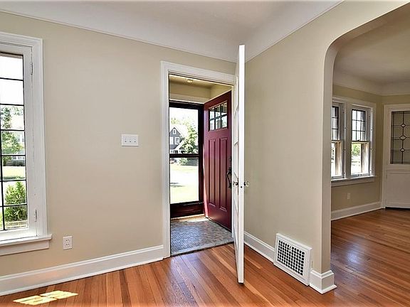 ABSOLUTE CHARM! Move right in to this sun-filled updated colonial with New White Kitchen(2020) featuring wood cabinets, granite, stainless appliances, pantry, and a dining /prep area! The whole house has been freshly painted from third floor to basement and the gleaming hardwood floors have just been refinished throughout. Central Air. All of the character and quality have been preserved in this home : leaded glass windows, arches, mouldings, solid wood paneled doors and French doors with elegant glass handles, plus a fabulous sandstone fireplace mantle in the spacious living rm. The gracious dining rm has two beautiful built-ins with leaded glass. A New Half Bath(2020) is off the back hall. A 3-season sunroom overlooks a deep rear yard with stone walkway & patio. The second floor offers 3 bedrooms, an office, & a Remodeled Full Bath. Large bonus 3rd floor room(currently unheated) provides great storage. Other features include newer washer and dryer, glass block windows, Newer driveway(2017), Newer 2-car garage (2011) . A+ location on lovely tree-lined street near parks, shopping, & minutes to hospitals and Cleveland's cultural center with museums, universities, and more!