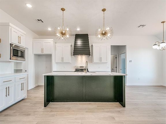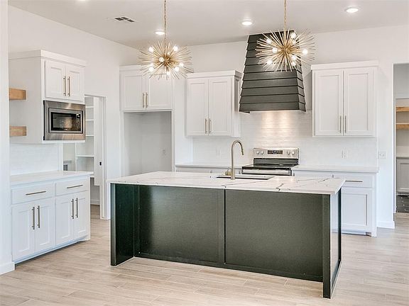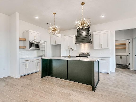 large showstopper walk-in pantry. This home has sassy and classy light fixtures, dashing cabinet hardware, and