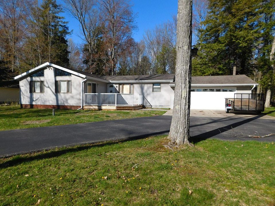 This Beautiful home is just steps away from the shared deeded lake access on Lake Margrethe. It boasts many great interior features such as knotty pine, hardwood floors and ceramic tiled floors, fireplace, also has updated kitchen with modern appeal. Nice blacktop drive with driveway lights that lead up to the 2 car garage. Back of the garage has drive thru doors, perfect for the golf cart. This home would be a great full time residence or your get away to peace and quiet that the area has to offer.