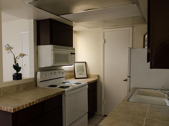 Great Setting in mostly Single Family Neighborhood! All units are 2 Bedrooms & 2 Bath! All Tile, Covered Parking, Coin Operated Laundry, Private Yards & Decks, Storage, Individual Meters, Desert Landscaping. Included in the rent is Water,sewer, and trash