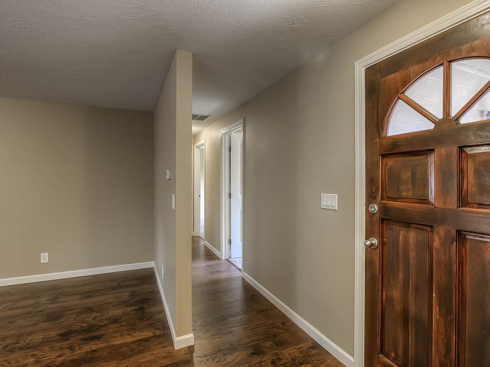 Beautiful remodeled home! Tons of curb appeal with new front siding, windows, roof and exterior paint. Inside features an open floor plan with new cabinets, and slab granite countertops with an island, great space for entertaining! New flooring and paint throughout as well. Both bathrooms have been completely remodeled with new flooring, vanities, bathroom hardware and tub. Master features a beautiful tile shower! New gas furnace and water heater as well as A/C and front yard underground sprinklers!