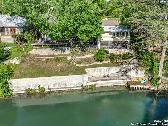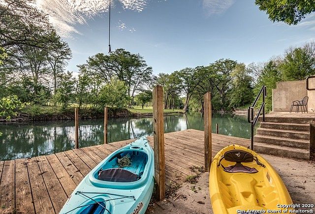 SPECTACULAR RARE-HOME ON THE RIVER NEAR GRUENE HALL! Kayak at your own private dock- neighbor across River is set back; feels like park land across. Neighbors are $$$ homes. Hardwoods, tall ceilings, Enjoy morning coffee in the HOT TUB- screened room, on .63 Acres, 5 minutes to Gruene Hall, & Downtown New Braunfels! Mr. Hanz- reputable local quality builder. Wood burning fireplace, 2 living rooms, 2 storage rooms attached to 2 car garage, Rainbird sprinkler system, watch tubers go by! No short term rentals allowed under 30 days