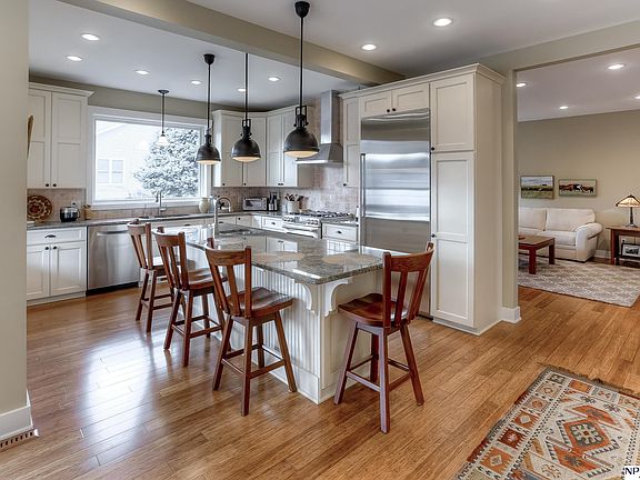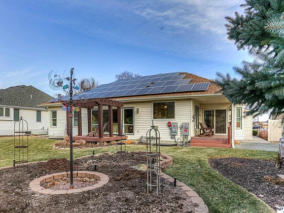 Tired fo expensive utility bills? This 4 bedroom, cozy ranch home comes with a 16kw, solar system with 30 kw of power storage and a geothermal heatpump. This beautiful home has 1666 square feet on the main floor, with updated kitchen and bathrooms, a 2 car garage with plenty of extra space for your workshop or storage. Great size primary bedroom, with double closets and bathroom with double sinks and walk-in shower. Eco-Friendly Strand Bamboo flooring. Basement has abundant storage and includes a full bathroom, bedroom and family room. You will love the exterior details of this home with 2 decks (one covered) a patio, underground sprinklers and meticulously maintained landscaping. Great location close to public library and walking/biking trails.