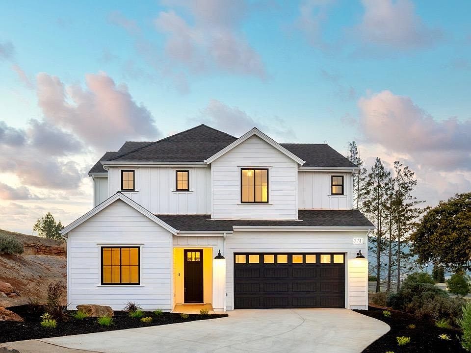 Prime location on a cul-de-sac a mile from the Fountaingrove Club. This 4 bedroom, 3 bath modern farmhouse design boasts 2,772 sf of thoughtfully designed living space, plus a generous and comfortable 336 sf covered porch. The dramatic two-story entry leads to an expansive open kitchen and living area with a sleek 48 inch fireplace and built-ins. Your chef's kitchen includes an island, upgraded cabinetry, stainless steel appliances (including a gas range and wall oven-microwave combination), quartz countertops, and a large walk-in pantry. Soak in the outdoors from your luxurious covered porch accessible from the living room through sliding glass doors. Enjoy this perfect indoor-outdoor living space and entertain year-round! Upstairs you'll find a spacious primary suite featuring a light-filled walk-in shower, freestanding soaking tub, and large walk-in closet, as well as a home office and three additional bedrooms.