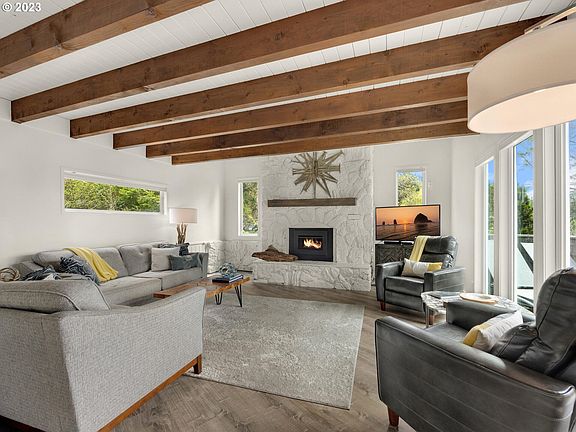 Escape to the breathtaking town of Cannon Beach in this recently renovated 3 bed, 2.5 bath home with enchanting ocean views. Tucked away along the S-curves of Hemlock Street, this home offers a serene and private retreat. Start your day on the deck while taking in the beauty and sounds of the ocean. The bright, open living space features a cozy gas fireplace, perfect for unwinding after a long day. The chic modern kitchen boasts high-end appliances, and the remodeled bathrooms offer ultimate comfort. Additional upgrades include new flooring, lighting, and landscaping. With easy access to all the shopping, dining, and entertainment that Cannon Beach has to offer, this home is the perfect coastal paradise to call your own. Don't miss out on this unique property!