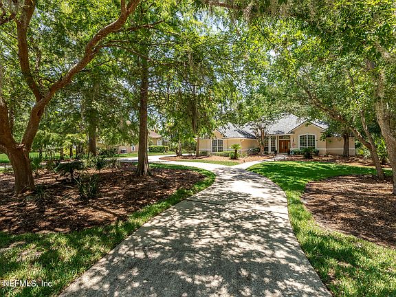 Welcome to 2247 Salt Myrtle Lane, where modern elegance meets family-friendly comfort. Nestled in the heart of Fleming Island, this immaculate four bedroom home offers a spacious sanctuary on a .66 acre lot featuring private view of the lagoon. This split floorplan hosts a master suite with a spa-like bathroom featuring dual vanities, soaking tub, separate shower, and his/her closets. The generously proportioned living spaces seamlessly connect the living, dining, and gourmet kitchen which is equipped with stainless steel appliances, granite countertops, and ample cabinet space. Step out back to enjoy outdoor living at its finest with a glass sunroom featuring an in ground jacuzzi tub that overlooks the lush backyard, and lagoon perfect for entertaining or relaxing with family. This beautiful home, located in the highly sought-after gated community of Pace Island known for its top-rated schools and serene surroundings also provides access to community pools, parks, & walking trails!