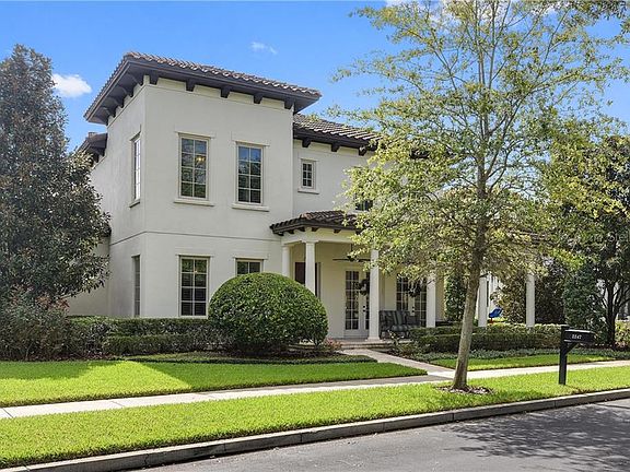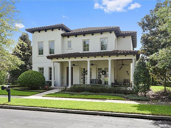 A David Weekley masterpiece, this refined Baldwin Park estate home sits beautifully on one of the most magnificent green spaces in Baldwin Park. Built with an expansive open concept floor plan and designer details. Upon entering, you are greeted with a spacious office on one side and a formal dining room with a butler area on the other. The downstairs master bedroom suite creates privacy with an en suite bath and exceptional closet space. A first floor guest room with private bath and walk in closet are an entertainer's dream. The exquisite chef's kitchen has wood cabinets and a gas range, a large pantry space and an eat-in kitchen area. It opens into a spacious family room with custom built-in cabinets. The floor plan is complemented by a beautiful Spanish tile staircase that takes you to the second floor. Upstairs houses three large bedrooms with a main gathering loft area. Step out onto the expansive back patio and you find an oversized updated smart pool with large spa, a built-in outdoor kitchen and beautiful landscaping. This phenomenal home has a storage friendly three-car garage and a garage apartment with private access. Walking distance to the Baldwin Park town center for easy dining and shopping. Located in the best school district, minutes from Orlando's prestigious private schools, and playgrounds just blocks away, this home offers convenient family living.