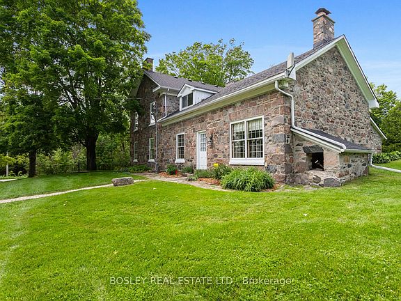 A classic fieldstone Georgian facade, the William Blezard residence circa 1858 is beautifully captivating, an agricultural property rich with history in Hamilton Township. Sitting on approximately 68 acres with mixed hardwood, rolling landscape, valley with spring fed creek and incredible elevated views from high points on the property along the Lake Ontario shoreline. The definition of unique, West facing entrance with transom and sidelights, perfectly balanced with the orientation of original windows and chimneys on both gable ends. An interior design that features modifications over the last century, a beautiful residential dwelling with historical elements, formal layout which includes a vaulted family room with fireplace and historic detail, secondary staircase, beautiful millwork, formal dining room with tin ceilings, living room and dinette/kitchen with double doors to the North with access to the summer porch and private grounds. Including 4 bedrooms, one of which is accessible via the secondary staircase through the family room, 2 bathrooms, laundry located on the main level and character filled awaiting your personal design details. Multiple outbuildings, barns ideal for storage or use for small livestock, drive shed and central pasture areas throughout the property historically raised by cattle, hay fields, gardens and housing livestock. An application to sever an approximate 1.6 acre lot has been conditionally approved by Hamilton Township and is inclusive to the sale of the property. Documentation is available upon request which outlines the application details. *This stunning farm estate was part of a filming production with Shaftesbury Films, a digital media production company founded by Christina Jennings in 1987. It is based in Toronto, Ontario, Canada. Part of a series for CBC Ontario's Murdoch Mysteries, a popular drama series.*
