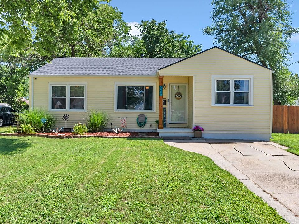 Welcome home to this exceptionally maintained 3 bed, 1 bath charmer in West Wichita. From the moment you pull up, you’ll notice the curb appeal—lush green lawn, neat landscaping, and low-maintenance vinyl siding paired with updated windows. Step inside to a bright and inviting living room with wood floors, fresh neutral paint, and crisp white trim throughout. Just off the living room is a separate dining area that flows into a generously sized kitchen with ample cabinet and counter space. The lower cabinets feature pull-out shelving—perfect for staying organized. All kitchen appliances (except the microwave) remain with the home, along with the washer and dryer, offering added value for the buyer. A separate laundry/mudroom sits just off the kitchen and leads to the backyard. The primary bedroom offers extra space with two closets, including a walk-in that provides plenty of storage and easy access to your wardrobe. Two additional bedrooms are located on the opposite side of the home, providing flexibility for guests, a home office, or whatever fits your lifestyle. The full bathroom is clean, updated, and centrally located for everyday functionality. Step outside to a fully fenced backyard featuring a newer oversized concrete patio—ideal for grilling, relaxing, or entertaining. Toward the back of the yard, a second concrete pad adds even more versatility: think firepit, basketball court, or additional outdoor hangout space. The storage shed stays for added convenience. Major updates include a new roof and gutters in 2024 with a transferable warranty, newer windows, a furnace replaced in 2016, and outdoor sewer lines also replaced in 2016—big-ticket items that offer long-term peace of mind. Located just minutes from Riverside Park, Botanica, and the vibrant Delano and downtown Wichita areas, you’ll enjoy everything from great dining and local shops to entertainment and festivals. Plus, everyday conveniences like groceries, restaurants, and gas stations are all close by. Homes this clean, updated, and move-in ready at this price point are hard to come by—schedule your showing today!