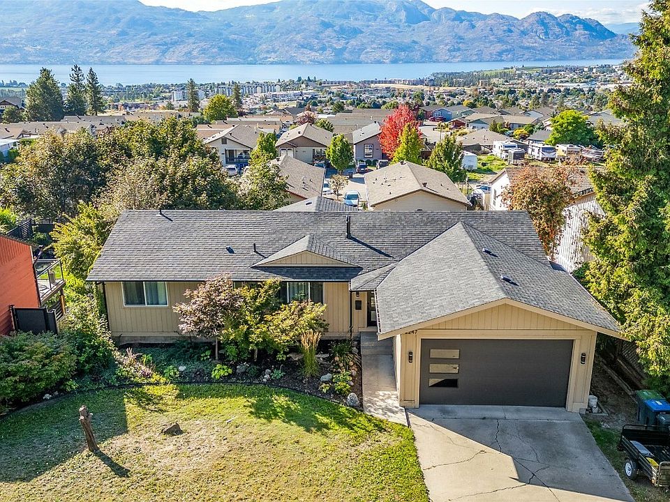 Updated 4 bedroom, 3 bath 2681 sq. ft. Walkout Rancher with fabulous views of West Kelowna, Okanagan Lake and the mountains. Quiet cul-de-sac location. Huge deck with lots of entertaining space. Large, fenced & landscaped back yard. Lots of recent updates (mostly 2022/2023) include a completely new exterior, with Hardi Plank siding, a brand new roof, soffits & gutters, brand new garage c/w lots of light, 10 ft. ceiling & man door. New support posts for deck & back of house, new doors & vinyl windows. Interior updates include new paint, lighting, and extra high quality vinyl plank flooring in kitchen/family room & front entry. Oversize 75 US gallon hot water tank, furnace and air conditioning are all new. Copper plumbing has been completely updated. Beautiful hardwood flooring in living room, dining room and bedrooms. Vaulted ceiling in living and dining room plus great views from primary bedroom, living room and kitchen/eating area. Location is close to shopping, golf, beaches, wineries, biking and hiking, and more. It's also less than 15 minutes to downtown Kelowna. The wood burning fireplace in the eating area/den is decommissioned. The gas fireplace downstairs is working. Suite Potential. There may be potential to build a kitchen downstairs as there was a wet bar previously. Buyers would have to satisfy themselves as to the feasibility. Among several things that aren't immediately noticeable are updated beams in the roof area and under the deck for extra strength.
