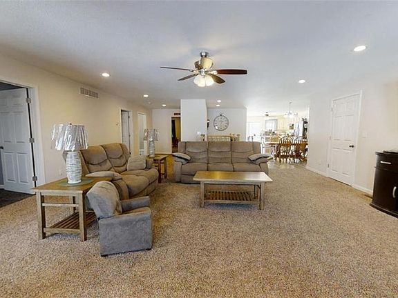 Move right into this stunning home with space galore on 9 acres outside Oakland! Enter to an open-concept living space with a large living room that flows to the formal dining room & kitchen, which features a large island, modern appliances, & cozy breakfast nook. Retreat to either of the 2 main floor bedroom suites, both with walk-in closets & full baths with walk-in showers. The main floor also includes 2 additional bedrooms, a laundry room, & bonus/play room. The partially finished full basement offers 3 additional bedrooms, a full bath, family room & rec room! The wooded 9 acre lot is your private oasis with a fenced yard & deck. Easily store your tools & equipment in the 70x40 machine shed or heated 2.5-car garage with built-in workbench. Additional highlights: 2 tankless water heaters, smart wood siding, 2x6 construction, 1" foam insulation, newer septic, & built-in drainage system. All doors are 36" wide for accessibility. You won't want to miss out on this one!
