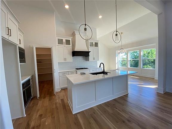 - Custom Cabinets, Kitchen Island, Painted Cabinets, Pantry, Stained Cabinets, Vaulted Ceiling(s), Walk-In Closet(s), Wet Bar